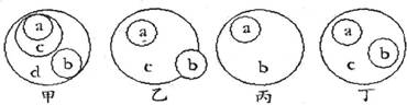 D.丁图可体现出细胞(c)、核糖体(a)和线粒体(b)的关系