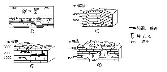 下面是云贵高原形成与发育过程示意图,读图回答5-6题。