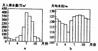 右图表示我国某水库年内逐月入库水量(a)、月均水位 (b)。读图,完成7-8题。