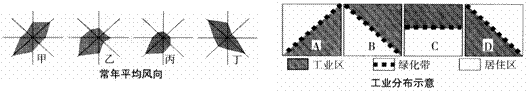 9.上图中数码所示地与下列“常年平均风向”、“工业分布”示意图连线正确的是: