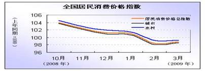 (注:2009年3月份,居民消费价格总水平同比下降1.2%)