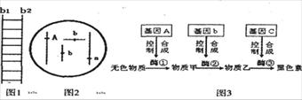 图1表示某生物的基因b转录过程中的局部分子状态,图2表示该生物体细胞内部分基因和染色体之间关系,该生物的黑色素产生需要如图3所示的三种基因共同参与控制,根据题意分析,下列说法不正确的是