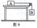 图9中的物体A重5N,物体B重4N。用细绳将两物体通过定滑轮连接,放手后,物体A恰能沿着水平桌面向右做匀速直线运动。不计绳重和滑轮轴摩擦,下列分析正确的是。