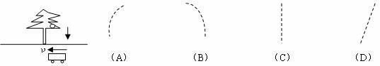1.汽车沿平直的公路向左匀速行驶,如图所示,经过一棵树附近时,恰有一颗果子从上面自由落下,则车中的人以车为参照物,看到果子的运动轨迹是下图中的( )
