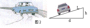 在高速公路的拐弯处,通常路面都是外高内低。如图2所示,在某路段汽车向左拐弯,司机左侧的路面比右侧的路面低一些。汽车的运动可看作是做半径为R的圆周运动。设内外路面高度差为h,路基的水平宽度为d,路面的宽度为L。已知重力加速度为g。要使车轮与路面之间的横向摩擦力(即垂直于前进方向)等于零,则汽车转弯时的车速应等于( )