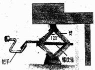 2008年5月12日14时28分汶川发生了8.0级大地震.先期到达灾区的武警战士利用千斤顶解救了大量压在废墟的群众。如图所示是简式千斤顶示意图,当摇动把手时,螺纹轴就能迫使千斤顶的两臂靠拢,从而将预制板顶起.当预制板刚被顶起时对千斤顶的压力为1.0×105N,此时千斤顶两臂问的夹角为120°,则下列判断正确的是