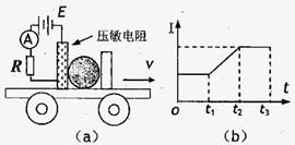 压敏电阻的阻值随所受压力的增大而减小,张明同学利用压敏电阻设计了判断小车运动状态的装置,其工作原理如图(n)所示,将压敏电阻和一块挡板同定在绝缘小车上,中间放置一个绝缘重球。小车向右做直线运动的过程中,电流表示数如图(6)所示,下列判断正确的是
