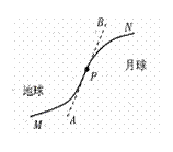 探月卫星发动机关闭,轨道控制结束,卫星进入地月转移轨道,图中MN之间的一段曲线表示转移轨道的一部分,P是轨道上的一点,直线AB过P点且和两边轨道相切。则( )