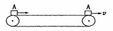 如下图所示的水平传送带静止时,一个小物块A以某一水平初速度从传送带左端冲上传送带,然后从传送带右端以一个较小的速度v滑出传送带;若传送带在皮带轮带动下运动时,A物块仍以相同的水平速度冲上传送带,且传送带的速度小于A的初速度,则( )
