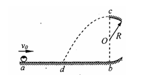 7.水平光滑直轨道ab与半径为R的竖直半圆形光滑轨道bc相切,一小球以初速度v0沿直线轨道向右运动,如图所示,小球进入圆形轨道后刚好能通过c点,然后小球做平抛运动落在直轨道上的d点,则 ( )