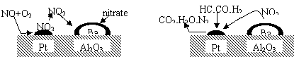 2007年诺贝尔化学奖授予德国化学家Gerhard Ertl,以表彰他在表面化学领域研究所取得的开拓性成就。某反应在Pt/Al2O3/Ba催化剂表面吸附与解吸作用的机理如下图所示(图中HC表示碳氢化合物,nitrate指硝酸盐),该机理研究是指