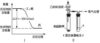 (2)磷在Z气体中燃烧可生成液态丙分子,也可生成固态丁分子。已知丙分子中各原子最外层均是8电子结构,丙的电子式是 。磷单质和Z单质反应生成1 mol丙时,反应过程与能量变化如图Ⅰ所示,该反应的热化学方程式是 。