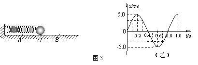 5.图3(甲)所示为以O点为平衡位置、在A、B两点间做简谐运动的弹簧振子,图3(乙)为这个弹簧振子的振动图象,由图可知下列说法中正确的是( )