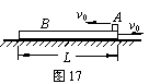 17.(12分)如图17所示,一质量M=4.0kg、长度L=2.0m的长方形木板B静止在光滑的水平地面上,在其右端放一质量m=1.0kg的小滑块A(可视为质点)。现对A、B同时施以适当的瞬时冲量,使A向左运动,B向右运动,二者的初速度大小均为2.0m/s,最后A并没有滑离B板。已知A、B之间的动摩擦因数μ=0.50,取重力加速度g =10m/s2。求: