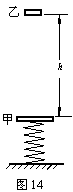 如图18所示。质量m=1.0kg的乙物体从甲物体正上方,距离甲物体h=0.40m处自由落下,