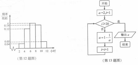 13.已知某程序框图如图所示,则执行该程序后输出的结果是 。