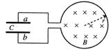 16.如图所示,在电容器C的两端接有一个圆环形导体回路,在圆环回路所围的面积之内存在着垂直纸面向里的匀强磁场B,已知圆环帕半径r=5cm,电容器的电容C=20μF,当磁场B以2×10-2T/s的变化率均匀增加时,则电容器的 ( )