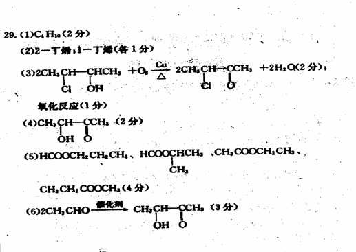 (6)最新获得发明专利的乙醛催化合成乙偶姻的方法是以乙醛为原料,在催化剂的作用下,实现了乙偶姻的一步合成。写出该反应的化学方程式: 。