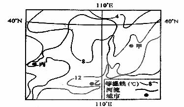 3.图中甲城市西侧的等温线向南弯曲,乙城市所在地区的等温线向西弯曲。其主要影响因素是: