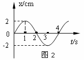 某一质点做简谐运动的位移x与时间t的关系图如图2所示,由图2可知,在t=1s时,质点的速度和加速度为: