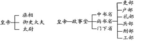 14. 下列是秦朝与隋唐时期的中央官制示意图,比较两图最能说明的问题是