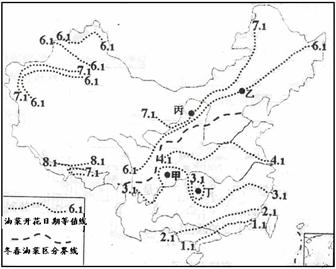 油菜是我国重要的油料作物,分布广泛。读“中国各地油菜开花日期等值线示意图”,回答5-6题。