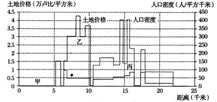 5.图示甲地土地价格和人口密度均很低,合理的解释是
