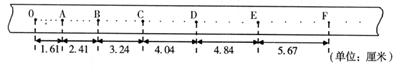 ②以下是为了测量滑块的加速度,由实验得来的一条纸带。从比较清晰的O点开始,该同学每数5个点做为一个汁数点,它们分别为:A、B、C、D、E、F等,测量出各相邻 计数点之间的距离,如图2所示。根据这条纸带,求出这次实验时滑块的加速度为: