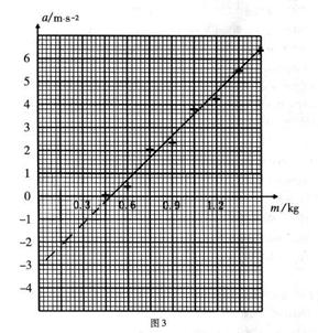 ③在实验的数据处理过程中,该同学以片码m的质量为横轴,以系统的加速度a为纵轴,绘制了如下图3所示的实验图线。