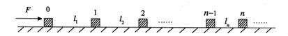 。在所有木块都静止的初始条件下,有一个沿轨道方向水平向右的恒力F持续作用在0号小木块上,使其与后面的木块连接发生碰撞,假如所有碰撞都是完全非弹性的(碰后合为一体共速运动)。求: