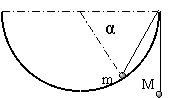 如图所示.在一个半径为R的半圆形光滑固定的轨道边缘,装着一个定滑轮,一轻绳跨过定滑轮,两端系着质量分别为m和M的物体(m>2M),现将m从静止开始释放,m从轨道上边缘滑到此位置(α=600)时的速率是