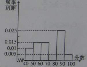 某校从参加计算机水平测试的学生中抽出60名学生,将其成绩(均为整数)分为六段,[40,50), [50,60),