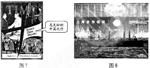 22.照片是“看得见”的历史。图7(尼克松中国之行)和图8(上海合作组织成立)记录了新中国两次重大的外交活动,它们所体现的共同原则是