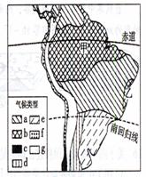 图为“南美洲局部地区气候类型分布图”,读图回答10-12题。