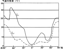 26.L2在南半球中纬度的气温年较差小于北半球同纬度,原因是南半球中纬度区域