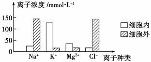 6.下图表示一个动物细胞内外不同离子的相对浓度,离子的浓度差是靠主动运输的方式维持的。由图分析可知进入细胞内的物质是