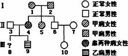 13.右图是具有两种遗传病甲、乙的家族系谱图,其中有一种遗传病的致病基因位于X染色体上,若Ⅱ-7不携带致病基因,相关分析错误的是