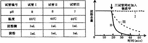 D.物质甲对试管Ⅲ中淀粉酶活性的促进作用大于试管Ⅱ