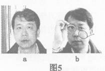 图5中a、b是同一人的两幅照片,b图中他拿的眼镜