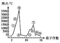 26.(7分)右图是部分短周期元素的单质熔点的变化图,根据此图,填写下列空格: