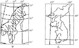 A.两图所示地区属于同一个大洲 B.甲图所示地区位于乙图所示地区的西北