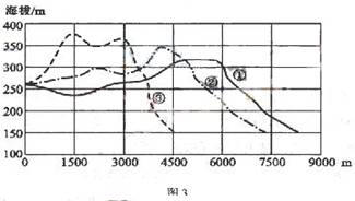 甲、乙两地点之间有三条道路相连。某地理活动小组测绘了这三条道路的纵向剖面图(图3)。读图3,完成17-18题。