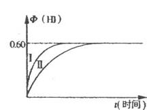 2HI(g);△H < 0,并达到平衡。HI的体积分数Φ (HI)随时间变化如图中曲线Ⅱ所示:
