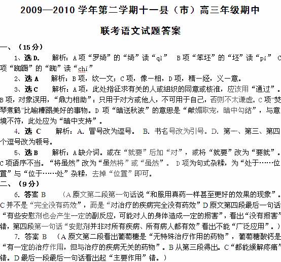 15、文学常识与诗文填空。(5题限选4题)(8分)