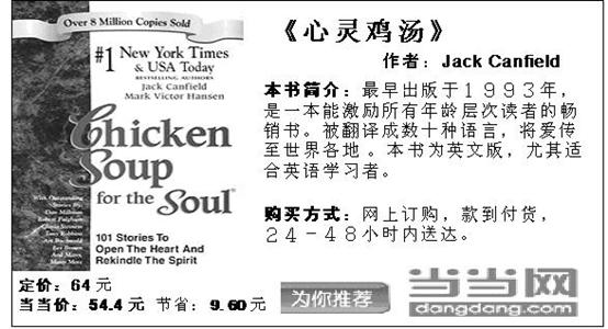 下面是当当网上小说《心灵鸡汤》的广告介绍。假如你是李华,请用英语给你的笔友王海写一封信,建议他上网购买此书。内容须包括推介理由和购买方法等。
