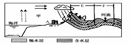 (1)图中甲处水循环类型是 ; E、F 所示区域的地质构造分别为 、 。(3分)