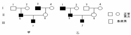 C.甲的Ⅰ2和乙的Ⅰ2 D.甲的Ⅰ3和乙的Ⅰ4
