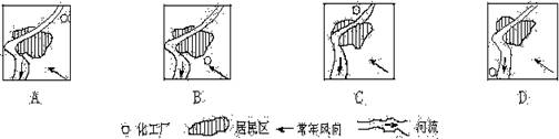 16.某城市计划建设一个化工厂,图中四种布局方案较合理的一种是