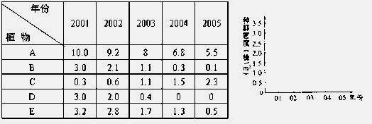 (1)在所调查的A-E五种植物中,你认为入侵物种最可能是_________,请在坐标图中绘出该物种的种群密度变化曲线。