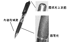 32.(鸡西)某同学完成作业后,对手中的碳素笔发生了浓厚的兴趣(如图所示)。你能说出它的哪些结构或使用方面涉及到什么物理知识吗?试着说出四个来。